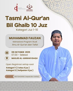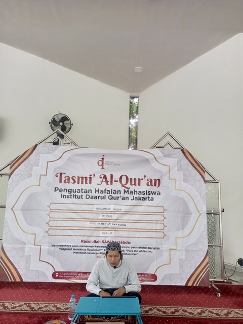 08 Oktober 2025 Mahasiswa Program Studi Ilmu Al-Qur’an dan Tafsir (IAT) Institut Daarul Qur’an (IDAQU) kembali melaksanakan kegiatan Tasmi’ Al-Qur’an, sebagai wujud komitmen dalam menjaga dan menguatkan tradisi Qur’ani di lingkungan kampus. Kegiatan ini berlangsung dengan khidmat di Aula Utama Kampus IDAQU, pada Jumat (tanggal kegiatan).