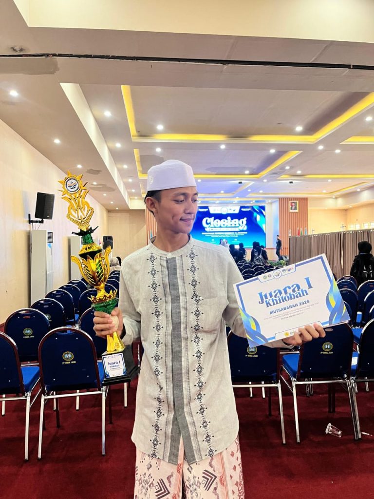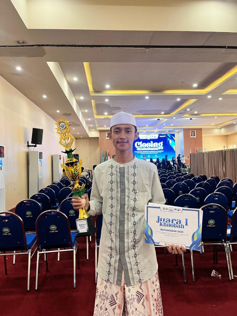 Jumat, 16 Januari 2026 — Kabar membanggakan datang dari mahasiswa Program Studi Ilmu Al-Qur’an dan Tafsir (IAT) IDAQU Jakarta. Muhammad Islahul Ulum, mahasiswa semester VI asal Probolinggo, Jawa Timur, berhasil meraih Juara I dalam Lomba Khitobah Bahasa Arab pada ajang MUTSABARAH (Musabaqoh Tsarwah Bahirah Al-Arabiyah) yang diselenggarakan oleh Himpunan Mahasiswa Prodi Pendidikan Bahasa Arab Universitas Nurul Jadid Paiton pada 14–16 Januari 2026.