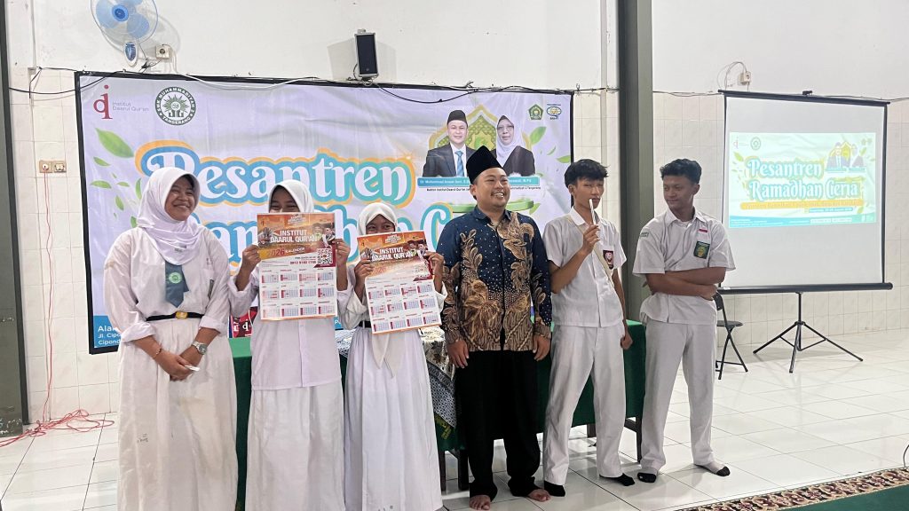 Tangerang, 23 Februari 2026– Suasana berbeda terasa di SMK Muhammadiyah 2 Tangerang pada Senin, 23 Februari 2026. Dalam rangka kegiatan Pesantren Ramadan Ceria, Program Studi Ilmu Al-Qur’an dan Tafsir (IAT) Institut Daarul Qur’an Jakarta (IDAQU Jakarta) menghadirkan salah satu dosennya yakni Jaka Ghianovan, S.Th.I, M.Ag (Sekprodi IAT IDAQU Jakarta) untuk berbagi inspirasi bersama para siswa. Tema bahasan dalam acara ini adalah “Ketika Al-Qur’an Menyapa Kita”, kegiatan ini tidak dikemas dalam bentuk ceramah satu arah, melainkan dialog hangat yang mengajak siswa terlibat langsung. Para peserta diajak merenungkan bagaimana Al-Qur’an tidak sekadar dibaca, tetapi juga dirasakan dan dihidupi dalam keseharian mereka sebagai pelajar.