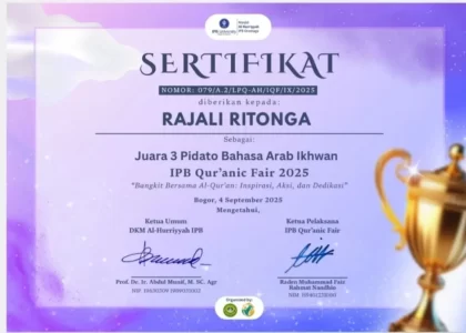 Bogor-Mahasiswa Institut Daarul Qur’an Jakarta (IDAQU) kembali menorehkan prestasi yang membanggakan. Rajali Ritonga, mahasiswa semester